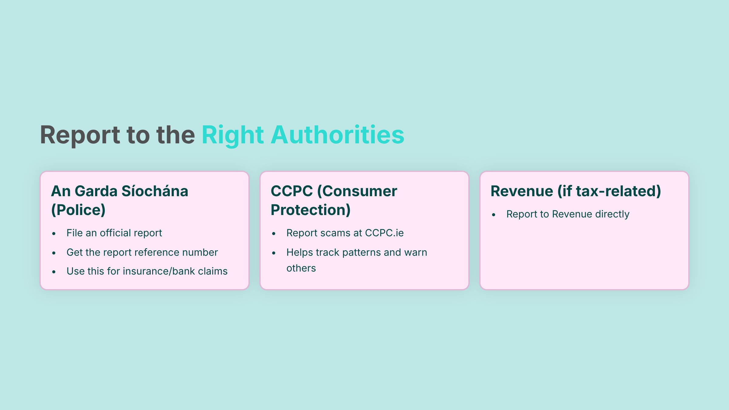 Garda fraud advice: https://www.garda.ie/en/crime/fraud/